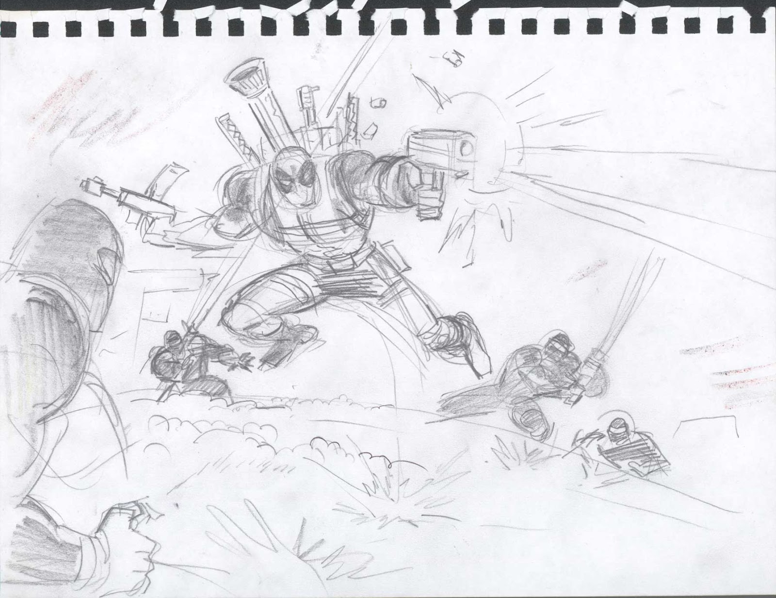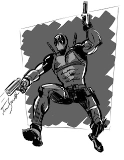 Been doodling Deadpool all week in preparation for the movie and practicing drawing on the computer. That ninja battle was a blast, golly bob howdy. I tried a couple of different styles and techniques so let me know which ones you like or think are cool.